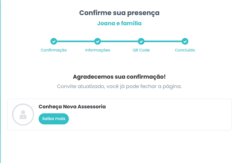 • Divulgação da Vitrine no RSVP quando o convidado confirma presença
