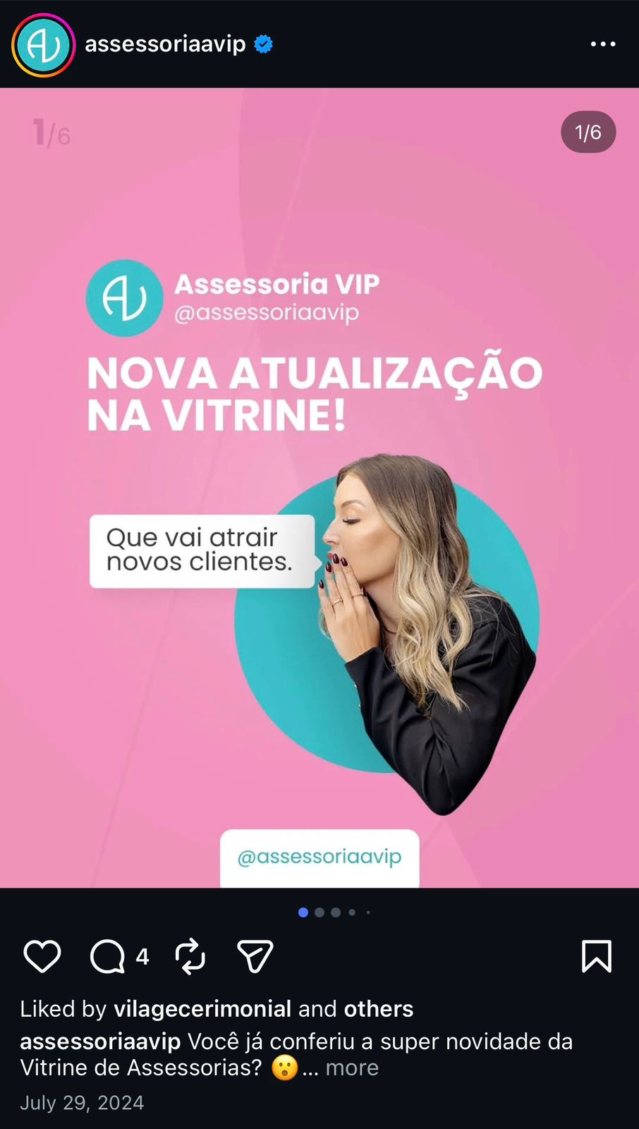 • Divulgação da Vitrine no link de direcionamento do Instagram e redes sociais.