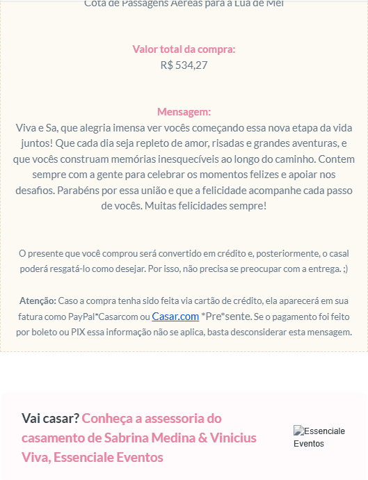 • Confirmação de compra de presente.